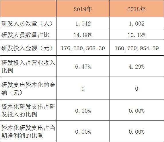 公司2018年、2019年研發(fā)投入金額及占營業(yè)收入的比例