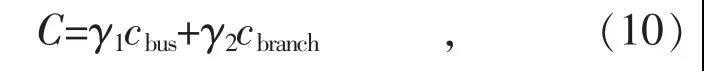 式中:C 為優(yōu)化方案實施成本;cbus為母線調(diào)整量;cbranch為間隔調(diào)整量;γ1,γ2分別為母線調(diào)整指標(biāo)權(quán)重和間隔調(diào)整指標(biāo)權(quán)重。