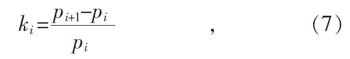 式中:pi為母線的第i 個負(fù)荷數(shù)據(jù)點;pi+1為母線的第i+1 個負(fù)荷數(shù)據(jù)點。