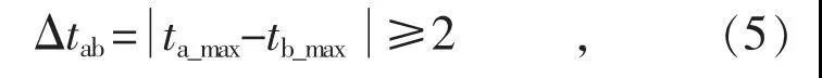 (2)不同饋線之間具有明顯錯峰現(xiàn)象的線路,若不同線路的峰值出現(xiàn)時間差Δtab大于2 h,則判定其具有錯峰現(xiàn)象。
