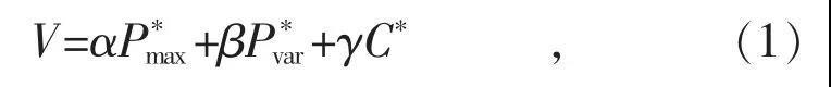 (3)建立綜合評價模型,評價指標(biāo)包含峰值、均衡度、成本3 個方面,且各指標(biāo)權(quán)重可根據(jù)實際情況調(diào)整。