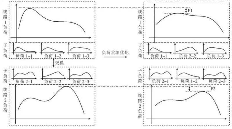 (1)基于不同類型用戶負(fù)荷特性曲線存在差異的特點,通過改變線路負(fù)荷分布,利用各負(fù)荷進(jìn)行錯峰互補(bǔ)。