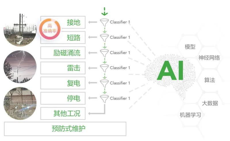“云”側(cè)實(shí)現(xiàn)故障定位。通過(guò)將AI技術(shù)主要應(yīng)用于平臺(tái)端的智能大數(shù)據(jù)綜合分析系統(tǒng),實(shí)現(xiàn)線(xiàn)路故障區(qū)段精準(zhǔn)定位、線(xiàn)路工況識(shí)別、線(xiàn)路故障分類(lèi)以及未來(lái)將要實(shí)現(xiàn)的故障預(yù)測(cè)等。最終,平臺(tái)還會(huì)把故障定位結(jié)果以短信和手機(jī)APP消息推送的方式發(fā)送給線(xiàn)路運(yùn)檢人員,幫助他們快速查找到故障點(diǎn)。