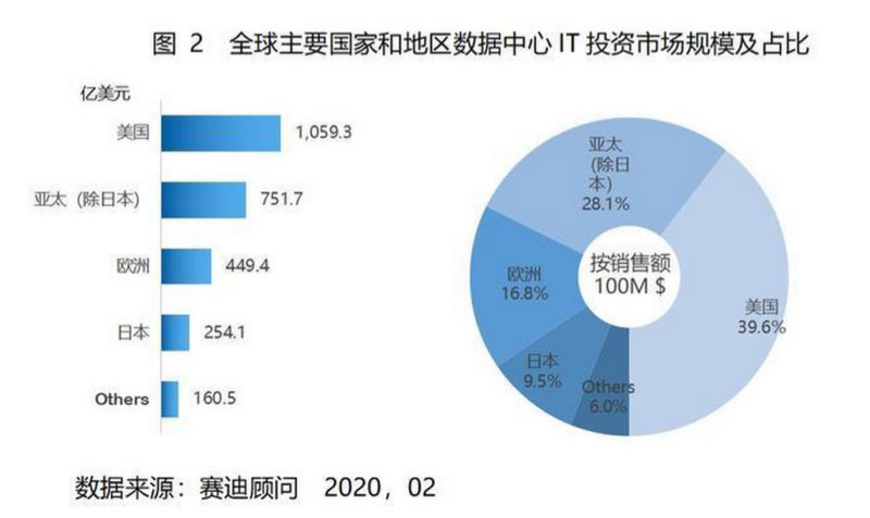 從全球數(shù)據(jù)中心建設(shè)發(fā)展來看,世界前三大數(shù)據(jù)中心市場(chǎng)——美國(guó)、日本和歐洲的數(shù)據(jù)中心IT投資規(guī)模仍占全球數(shù)據(jù)中心IT投資規(guī)模的60%以上,美國(guó)保持市場(chǎng)領(lǐng)導(dǎo)者地位,在數(shù)據(jù)中心產(chǎn)品、技術(shù)、標(biāo)準(zhǔn)等方面引領(lǐng)全球數(shù)據(jù)中心市場(chǎng)發(fā)展。亞太市場(chǎng)仍是全球數(shù)據(jù)中心市場(chǎng)的亮點(diǎn),與2018年同期相比增長(zhǎng)達(dá)到12.3%,數(shù)據(jù)中心IT投資規(guī)模達(dá)到751.7億美元,主要?jiǎng)恿θ詠碜灾袊?guó)數(shù)據(jù)中心市場(chǎng)穩(wěn)步發(fā)展,移動(dòng)互聯(lián)網(wǎng)、云計(jì)算、大數(shù)據(jù)、人工智能等應(yīng)用深化,互聯(lián)網(wǎng)+,人工智能x,工業(yè)互聯(lián)網(wǎng)建設(shè)加速。