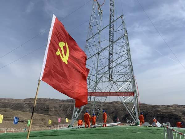 該工程線路全長1137千米,新建陜北和武漢換流站。線路在陜西境內(nèi)228.1千米,新建鐵塔415基。首基新組鐵塔呼稱高52米,鐵塔總高58.8米,鐵塔總重約49噸。在首基組塔現(xiàn)場,黨旗高高飄揚、條幅高掛,安全施工牌整齊列隊,其中印有“陜鄂情深一線連,榆漢同心兩站牽”的標語十分醒目。