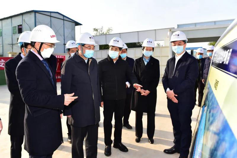 調(diào)研中,胡書記詳細(xì)詢問了隆基股份目前復(fù)產(chǎn)復(fù)工及在陜重點(diǎn)項(xiàng)目建設(shè)情況。鐘寶申介紹到,在此次疫情面前,隆基采取了嚴(yán)密的防控措施,截止目前全集團(tuán)3萬余名員工無一感染。同時(shí),在各級(jí)黨委、政府的大力支持和幫助下,隆基也在保證員工健康安全的基礎(chǔ)上以最快的速度投入了復(fù)產(chǎn)復(fù)工之中。目前,隆基所有生產(chǎn)基地已經(jīng)全部恢復(fù)生產(chǎn),所有重點(diǎn)產(chǎn)能建設(shè)項(xiàng)目也在全力建設(shè)之中。在建設(shè)項(xiàng)目現(xiàn)場(chǎng),鐘寶申董事長(zhǎng)詳細(xì)介紹了隆基咸陽年產(chǎn)5GW單晶組件項(xiàng)目基本情況,該項(xiàng)目于2019年6月28日簽訂投資協(xié)議,隆基股份總投資約18.39億元,項(xiàng)目完全達(dá)產(chǎn)后可實(shí)現(xiàn)年?duì)I業(yè)收入約85億元。鐘寶申表示,在陜西省各級(jí)黨委、政府的大力支持下,該項(xiàng)目建設(shè)進(jìn)度未受明顯影響,預(yù)計(jì)可在3月底實(shí)現(xiàn)首個(gè)車間交付,在4月底完全交付投入生產(chǎn)。