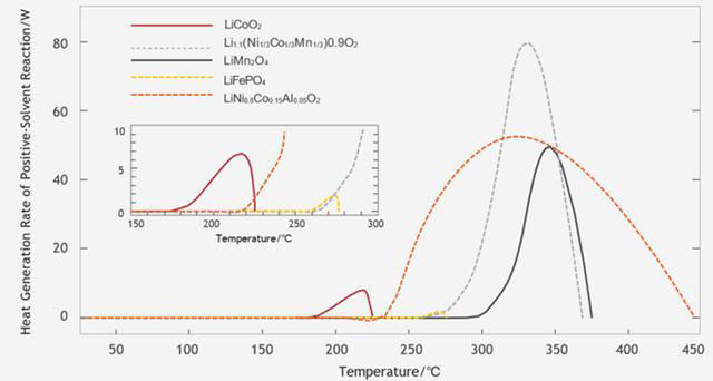 來 源 :P. Peng, F. Jiang., Thermal safety of lithium-ion batteries with various cathode materials: A numerical study.