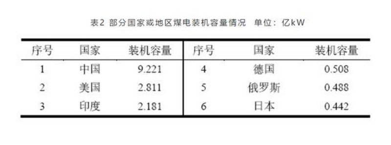 3.1世界各國煤電機組裝機容量和服役年限情況