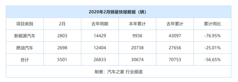 受到新型冠狀病毒感染肺炎疫情,以及春節(jié)假期影響,車市銷量整體出現(xiàn)下滑趨勢,比亞迪也未能幸免。3月7日,比亞迪發(fā)布銷量快報顯示,今年2月比亞迪共銷售新車5501輛,同比下降79.5%。今年前兩月累計銷量為30674輛,同比降低56.65%。