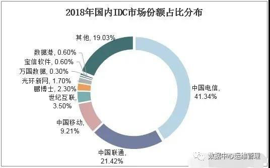 目前國(guó)內(nèi)IDC市場(chǎng)由基礎(chǔ)電信營(yíng)業(yè)商所主導(dǎo),2018年國(guó)內(nèi)三大電信運(yùn)營(yíng)商合計(jì)占據(jù)71.97%的市場(chǎng)份額,中國(guó)電信、中國(guó)聯(lián)通、中國(guó)移動(dòng)分別占據(jù)41.34%、21.42%和9.21%的市場(chǎng)份額。