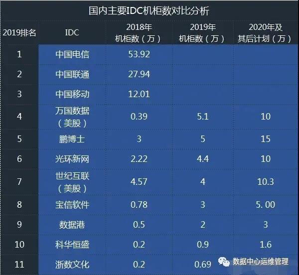 寶信軟件:由寶鋼控股,從2013年10月起通過(guò)一系列股權(quán)融資和自籌資金在上海市寶山區(qū)先后完成建設(shè)寶之云一/二/三期IDC項(xiàng)目,成為上海最大的數(shù)據(jù)中心產(chǎn)業(yè)基地,公司以批發(fā)業(yè)務(wù)為主,2018年產(chǎn)業(yè)規(guī)模近20000個(gè)機(jī)柜,服務(wù)外包業(yè)務(wù)(包含信息系統(tǒng)、軌道交通車輛系統(tǒng)控制部件的維護(hù)及維修、云計(jì)算運(yùn)營(yíng)服務(wù)、IDC運(yùn)營(yíng)服務(wù))實(shí)現(xiàn)營(yíng)業(yè)收入12.9億元。2019年的寶之云四期規(guī)劃新增機(jī)柜9000個(gè),2019年開建的的武鋼大數(shù)據(jù)產(chǎn)業(yè)園將新增機(jī)柜18000個(gè)。寶信軟件2019年交付機(jī)柜3萬(wàn)個(gè),2019年預(yù)計(jì)能再落地2-3w個(gè)新指標(biāo),對(duì)應(yīng)2020年能有5w個(gè)左右。