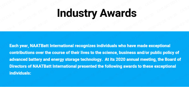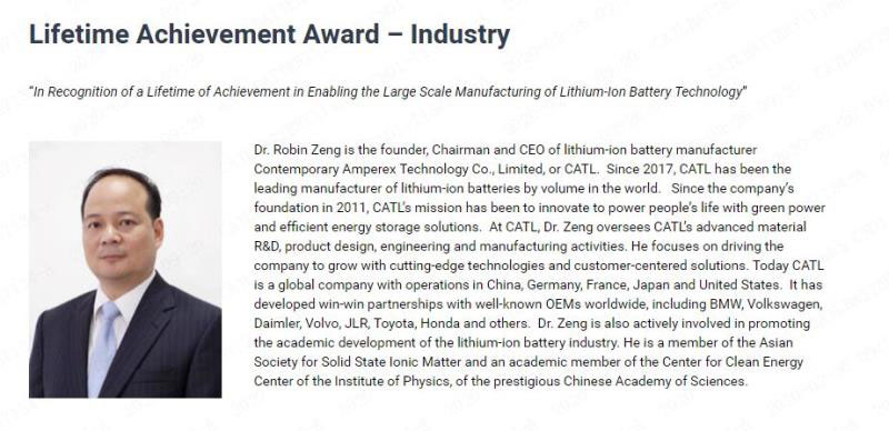 在近期舉行的美國國家先進(jìn)技術(shù)電池聯(lián)盟(National Alliance for Advanced Technology Batteries,以下簡稱NAATBatt)年度會議上,寧德時(shí)代創(chuàng)始人、董事長曾毓群被授予年度終身成就獎(jiǎng)。
