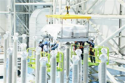 除保證安裝環(huán)境“夠干凈”外,還要保證設備安裝“夠穩(wěn)”。謝妙添介紹:“相比常規(guī)懸吊式閥塔,該工程閥塔采用支撐式安裝,每個閥塔有16個底座,必須把各底座的水平精度控制好,才能保障閥塔組件精準安裝就位。因此,我們嚴格按照閥組安裝工藝要求,各底座相互間高低差有效控制在±1毫米?!?