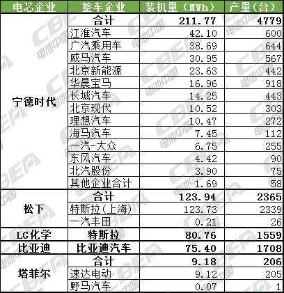 值得一提的是,裝機(jī)量排名前五企業(yè)配套動(dòng)力電池全部為三元電池。