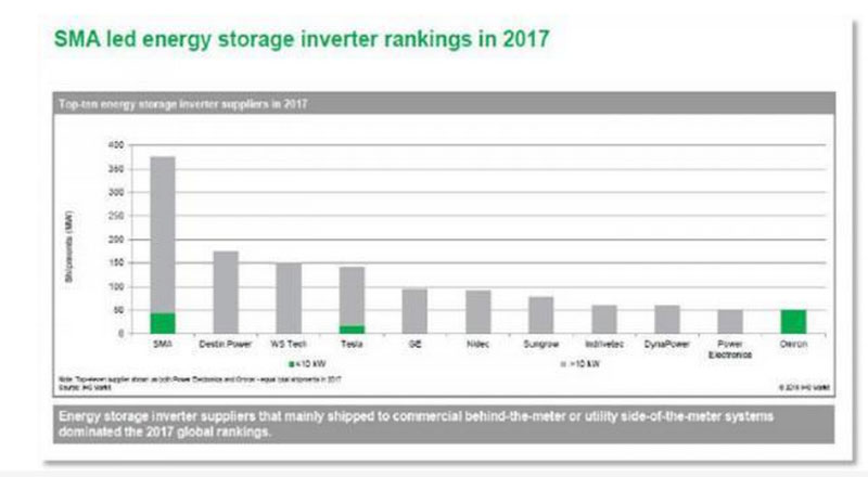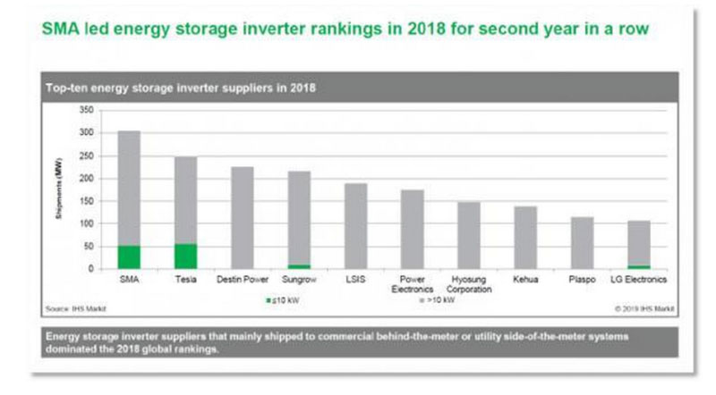 IHS Markit于2019年8月發(fā)布《2019全球儲能逆變器(PCS)分析報告》,在報告中公布了其對儲能逆變器行業(yè)的年度調(diào)查結(jié)果和預(yù)測,SMA憑借出色的、覆蓋全球的儲能逆變器出貨量及裝機量,繼續(xù)蟬聯(lián)全球儲能逆變器行業(yè)第一品牌。