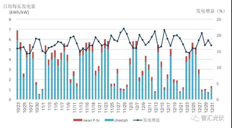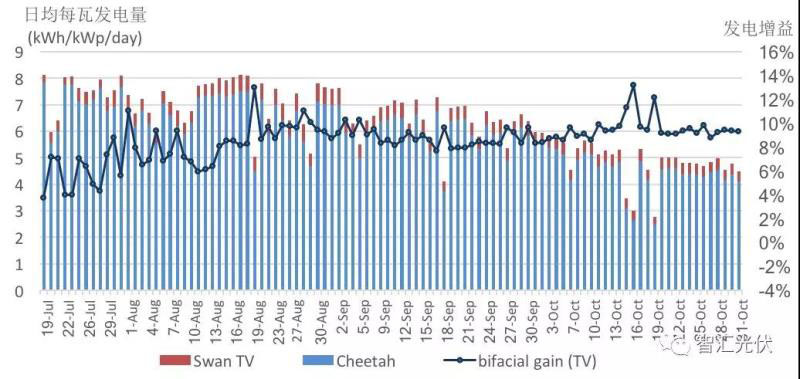 主要結(jié)論:在該項目中,P型透明背板雙面組件的發(fā)電增益高達16.66%。