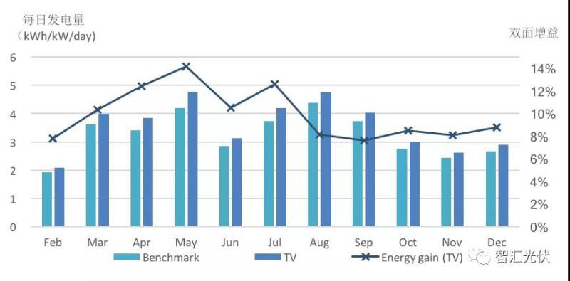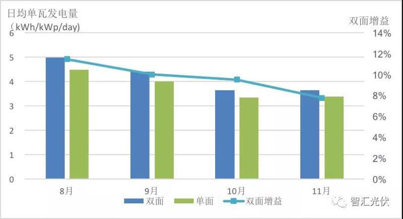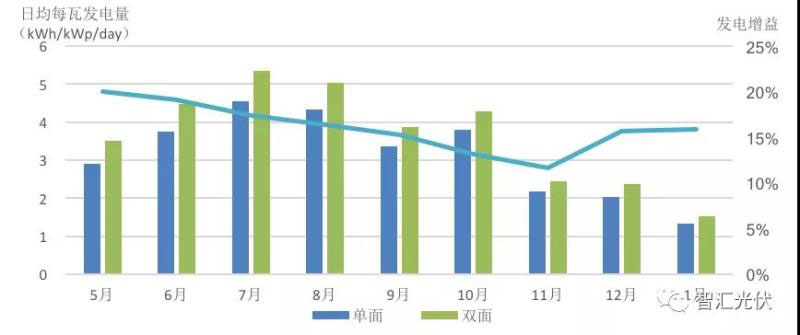 主要結(jié)論:平均雙面增益為16%,夏季雙面增益較高,可達19%,冬季較低。