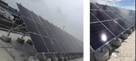 水泥地組串級測試是安裝在工廠屋頂?shù)捻椖?,接近工業(yè)型分布式項目的設(shè)計接近,組件最低點離地僅0.7m。