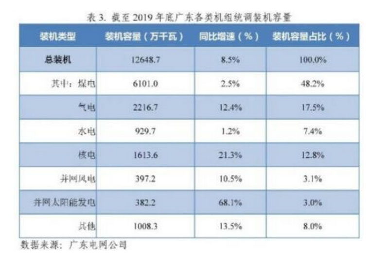報告顯示,截至2019年12月底,廣東電網(wǎng)統(tǒng)調(diào)裝機容量1.26億千瓦,同比增加8.5%,其中中調(diào)裝機容量1.04億千瓦,地調(diào)裝機容量0.22億千瓦;全省發(fā)受電量合計6581.6億千瓦時,同比增加6.5%。2019年廣東最高統(tǒng)調(diào)負荷1.22億千瓦,比去年最高負荷增長11.9%。
