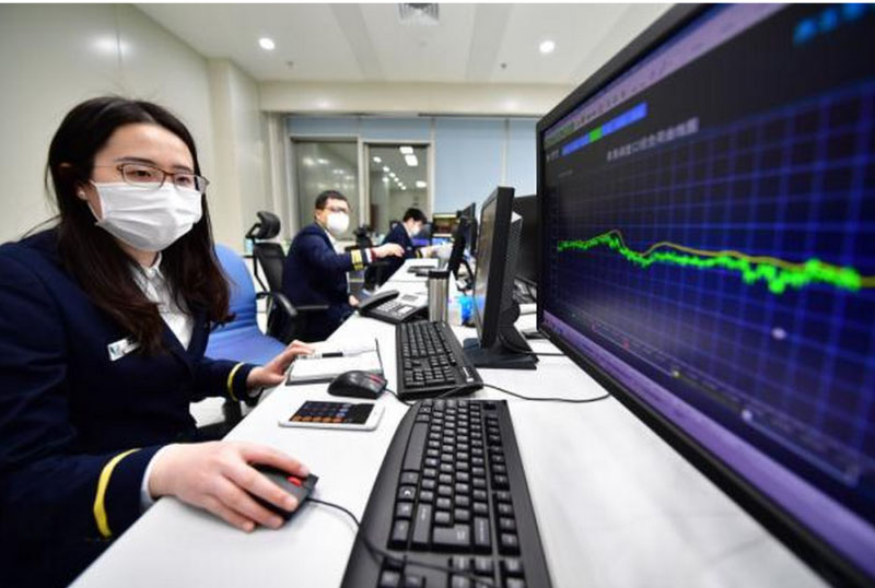 2月6日,調(diào)度員李秋芳在調(diào)度大廳內(nèi)工作。