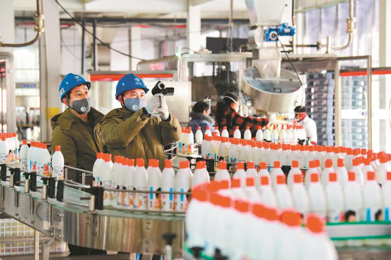 江蘇金湖縣供電公司員工通過紅外線測(cè)溫儀為一家84消毒液生產(chǎn)企業(yè)智能化車間檢查電氣線路設(shè)備。 梁德斌 攝