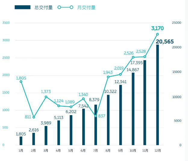 整個(gè)2019年,蔚來共售出20565輛電動(dòng)汽車,在造車新勢(shì)力中名列前茅。