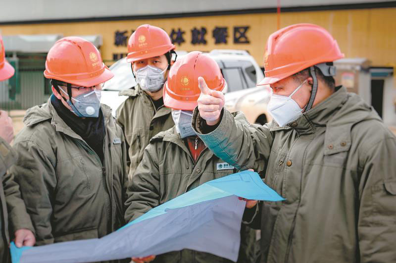 供電員工在雷神山醫(yī)院建設工地現(xiàn)場討論施工方案。左衛(wèi)兵 攝