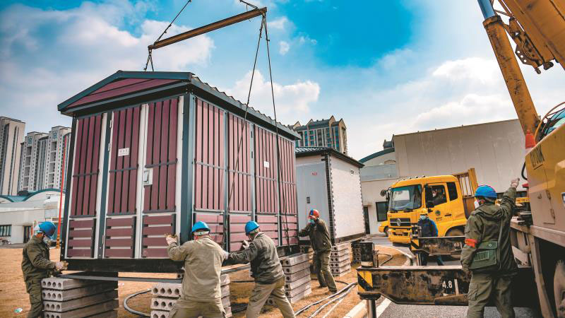 江夏供電公司總經理陳剛介紹,進場施工前,該公司與醫(yī)院建設設計單位進行溝通后,擬定雙環(huán)網(wǎng)四回路同時供電高可靠性供電方案,充分考慮了各種制約工期因素。在其他單位入場前,率先進行電纜通道破路埋管作業(yè);設備基座全部采用預制板,現(xiàn)場拼裝;對負荷需求進行了科學預估,確保不因規(guī)劃變更而更改供電施工方案。“此外,雷神山醫(yī)院施工條件也相對較好,是原軍運村停車場,我們把所有電力設備都布置在醫(yī)院外圍,在施工過程中與其他建設單位高度協(xié)同,減少交叉作業(yè)沖突矛盾,沒有出現(xiàn)任何停工滯工現(xiàn)象?!?