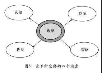 前面從公用電網(wǎng)和私有不間斷電源的組合的頂層認知做了剖析,擺在面前的是該選擇什么樣的改革方案,該考慮什么樣的推進策略,該選擇從哪里進行突破。改革的目的是要提升生產(chǎn)力,提升效益。但改革的成功需要一般需要的以下四個因素(圖8):