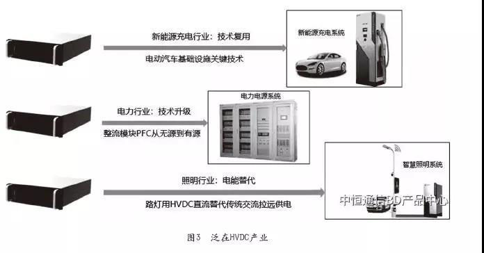 最后,HVDC技術卓越提升促進產(chǎn)業(yè)泛在高壓直流(見圖2)。數(shù)據(jù)中心HVDC技術平臺帶來了大功率全數(shù)字化變換與控制技術、三相有源功率因數(shù)校正變換與控制技術等領先的電力電子技術,十年時間功率密度提升1.9倍、效率提升3%,損耗減少66%,同時,也奠定了電動汽車充電設施關鍵技術路線、電力行業(yè)設備升級、城市照明行業(yè)電能替代等,也給5G的網(wǎng)絡建設提供了絕佳的能源平臺(見圖3)。