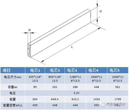 從第三個專利里面,我們可以看到比亞迪的刀片電池是一種長電芯方案(基于方形鋁殼來做的電池),在比亞迪原有的電芯的尺寸基礎上(比亞迪之前在用的比較多的是173的和148的兩種),通過減薄電芯的厚度,增大電芯的長度,將電芯進行扁長化設計并且予以減薄設計。