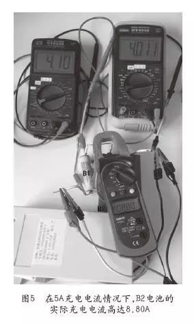 根據(jù)測量數(shù)據(jù)和充電倍率的計(jì)算公式,B1電池的實(shí)際充電倍率為0.84/1=0.84C,B2電池的實(shí)際充電倍率為8.8/11=0.8C,如果忽略測量誤差,兩塊電池的充電倍率是相同的。