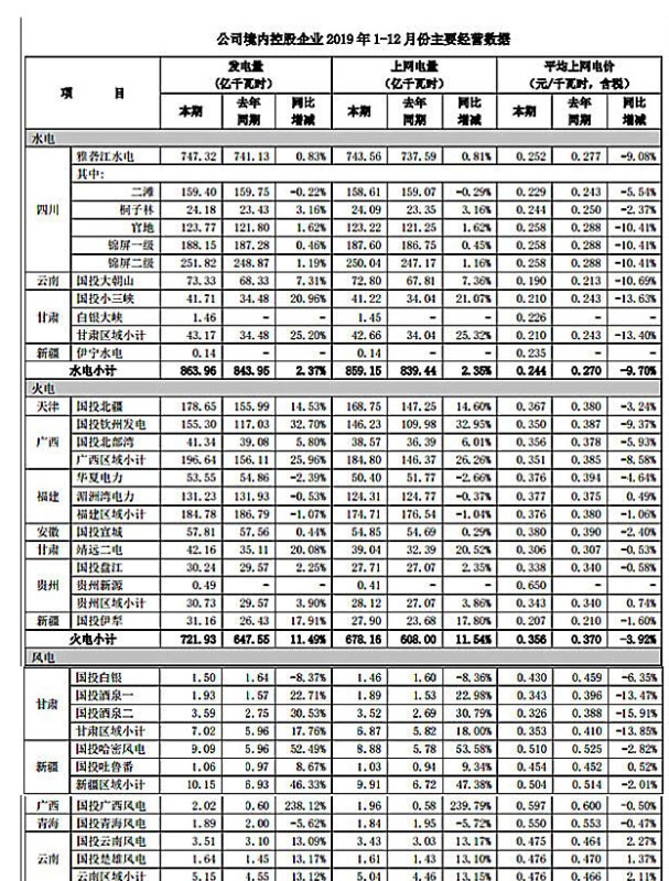 ,2020年1月11日,國投電力控股股份有限公司(以下簡稱“國投電力”,600886.SH)公布了企業(yè)2019年主要經(jīng)營數(shù)據(jù)。