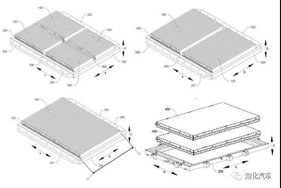 從專利來看,比亞迪CTP的方案在8種以上,對(duì)應(yīng)于不同尺寸電芯和不同的布置,也考慮到了雙層電芯的方案;對(duì)于箱體的集成,CTP會(huì)有傳統(tǒng)的車底盤與箱體分離的傳統(tǒng)方案,也有二者集成為一體的集成底盤方案。