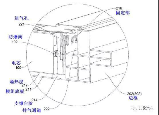 這個(gè)圖也可以看出比亞迪CTP熱失控的基本思路,正對(duì)著防爆閥設(shè)計(jì)進(jìn)氣孔,將熱失控發(fā)生后的氣體、火焰等引導(dǎo)到排氣通道,經(jīng)排氣通道排向周圍環(huán)境。另外有多個(gè)模組的,模組之間會(huì)形成物理隔離;整個(gè)電池包的外面應(yīng)該還會(huì)有平衡防爆閥;這個(gè)思路與Model S的設(shè)計(jì)比較一致,難點(diǎn)在于IP67,熱失控通道的進(jìn)水腐蝕問題。