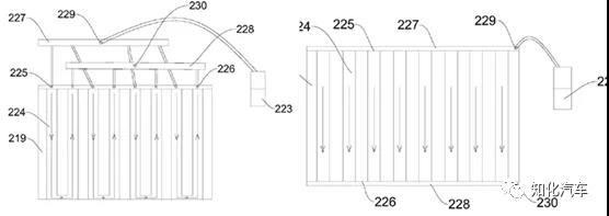 比亞迪對(duì)CTP給出了兩種冷卻方案,上圖展示的為液冷設(shè)計(jì)。該方案是把水冷板放在整個(gè)電池包的上面,與模組頂板的直接接觸,對(duì)電芯側(cè)面窄邊進(jìn)行冷卻;為提高導(dǎo)熱效率,模組頂板與電芯側(cè)面之間有導(dǎo)熱板(可能導(dǎo)熱膠或?qū)釅|更合理),整個(gè)包的溫度差控制在1℃以內(nèi)。水冷采用U形水道設(shè)計(jì)或并行設(shè)計(jì)。
