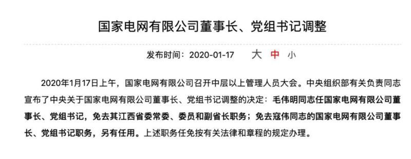 春節(jié)很快來臨,在一片和喜慶祥和的氣氛中,電力圈突然傳出震驚消息——國家電網(wǎng)有限公司換帥了,上任一年多的寇偉據(jù)傳調(diào)任大唐集團(tuán)總經(jīng)理,毛偉明接任。