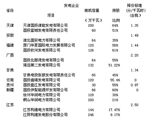根據(jù)國家發(fā)展改革委通知,公司燃煤機(jī)組所在省份的上網(wǎng)電價(jià)調(diào)整情況如下: