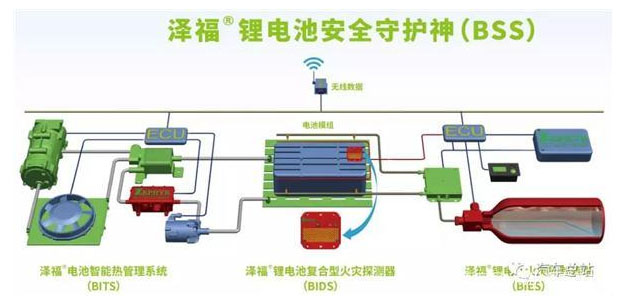 這三個(gè)系統(tǒng)共同構(gòu)成了澤福鋰電池安全守護(hù)神(BSS)系統(tǒng),三者缺一不可,共同作用從根本上解決電池?zé)崾Э貑?wèn)題。