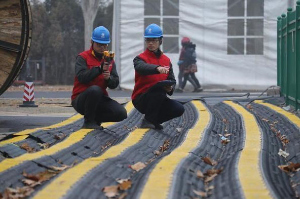 在這支上百人的保電隊伍里,有一個90后“女兵”,她叫班墨涵。她進駐保電現(xiàn)場后,就帶領(lǐng)著幾個同事負責現(xiàn)場10000余名演員的照明供暖電源的電力保障工作。