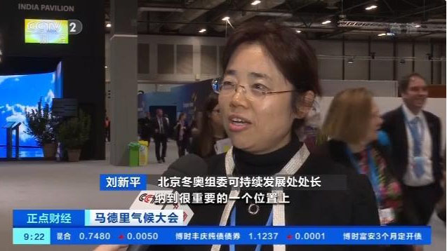 央視記者平凡:我現(xiàn)在是在本屆大會中國角的邊會上,而這場邊會剛剛發(fā)布了2022年北京冬奧會綠色行動計劃,其中就包括了到2022年北京冬奧會的場館將全部使用上可再生能源。