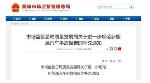 市場監(jiān)管總局質(zhì)量發(fā)展局發(fā)布《關(guān)于進(jìn)一步規(guī)范新能源汽車事故報(bào)告的補(bǔ)充通知》(圖片來自國家市場監(jiān)督管理總局官網(wǎng))