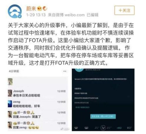 蔚來對ES8“長安街趴窩”事件做出回應(yīng)(圖片來自微博)