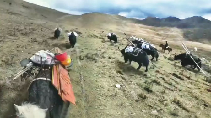 用牦牛馱運(yùn)光伏電站設(shè)備及材料上站