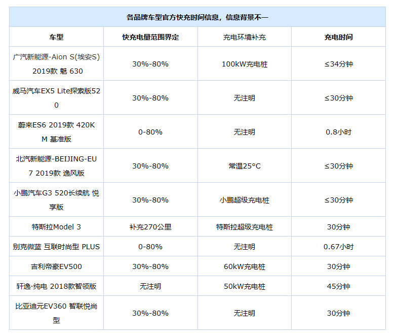 也由于各品牌之間的電池容量、控制系統(tǒng)策略等技術(shù)背景不同,官方發(fā)布充電時(shí)間信息范圍也有不同,例如有提供10%-80%或者20%-80%的說(shuō)法,也有直接注明30分鐘可充入XX續(xù)航里程的描述,加上用戶充電習(xí)慣也有所不同,所以目前行業(yè)內(nèi)也沒(méi)有針對(duì)充電區(qū)間背景標(biāo)準(zhǔn)進(jìn)行規(guī)范。