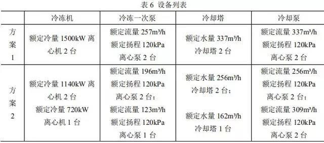 本次數(shù)據(jù)中心采用二次泵水系統(tǒng)形式,冷機(jī)的工況和水系統(tǒng)直接相關(guān)。上述兩個(gè)搭配方案所選擇的設(shè)備參數(shù)和臺(tái)數(shù)見(jiàn)表6。