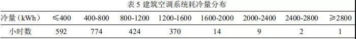 利用DeST對(duì)建筑逐時(shí)需要冷量分布情況進(jìn)行分析,分析結(jié)果見(jiàn)表5??梢园l(fā)現(xiàn),冷量需求在低于1600kW的范圍內(nèi)比較集中,尤其是冷量需求低于1200kW的小時(shí)數(shù)占到需要開(kāi)啟冷機(jī)總小時(shí)數(shù)的60%。