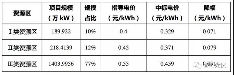 2019年,國家能源局推出的全國性的競爭電價政策。雖然標(biāo)桿電價定在0.4元/kWh、0.45元/kWh、0.55元/kWh,但項目拿到的實際價格大幅低于知道電價,具體如下表所示。
