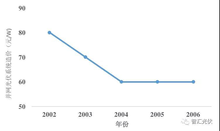 2007、2008年,國內(nèi)光伏系統(tǒng)價格仍然無明顯下降,并網(wǎng)光伏電站的系統(tǒng)價格維持在50~60元/W。