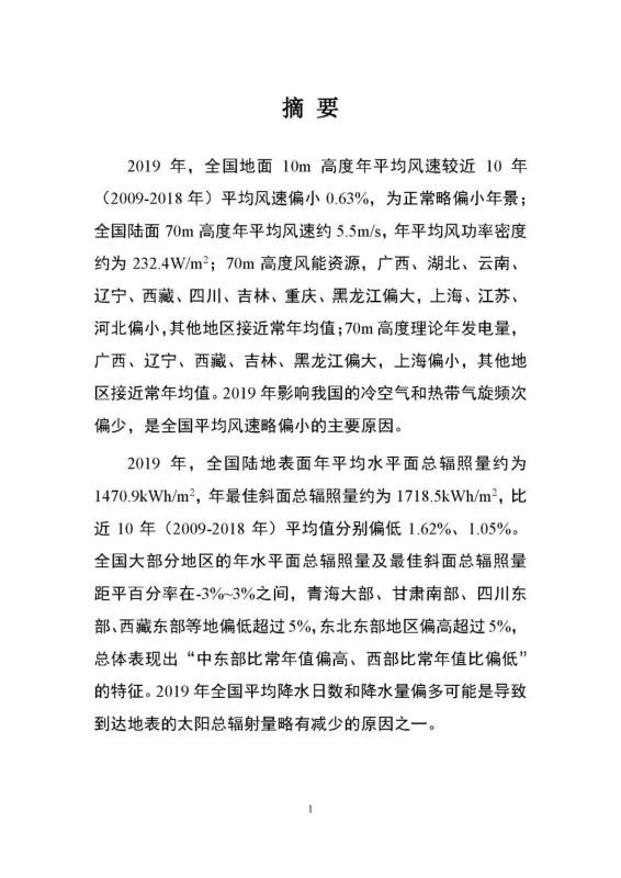 《2019年中國風(fēng)能太陽能資源年景公報 》全文